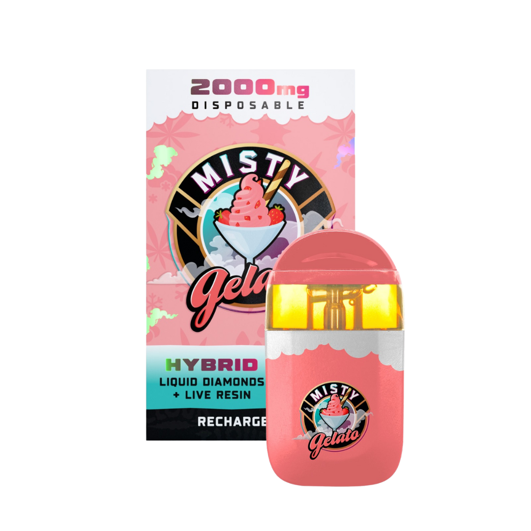 Misty Gelato is a smooth hybrid vape with creamy sweetness and a chilled-out high that melts your stress away.